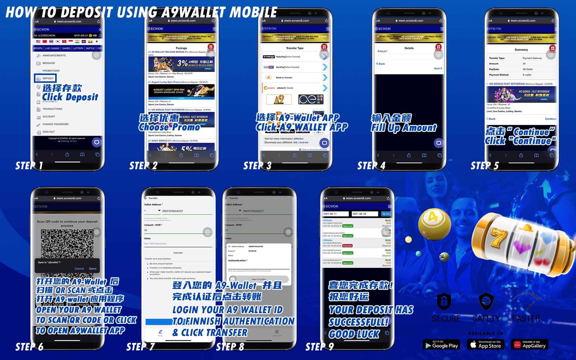 Please follow these steps to make a deposit via mobile phone :