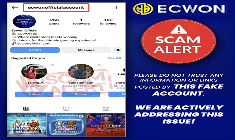 ECWON hereby clarifies that we has no relationship with this Whatsapp Number "601121698954" & Telegram "60108962654". Before deposit please enter our ECWON official website livechat and get latest online banking account with our 24 hours livechat customer service.